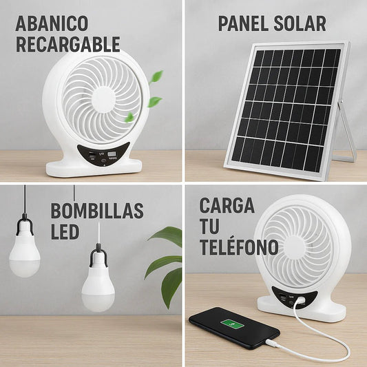 Mini Ábanico Solar Recargable EcoLuz™ | Ventilador Solar con Focos LED – ¡Olvídate de los apagones!