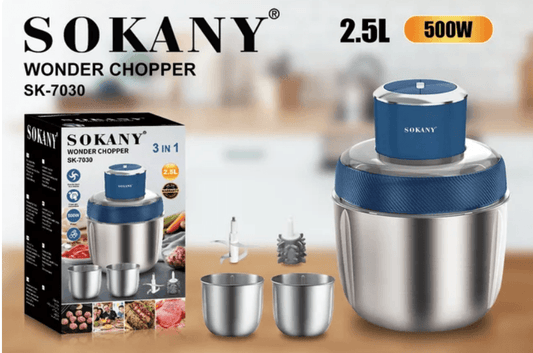 TRITURADOR DE ALIMENTOS 3 EN 1 DE 2.5L, 500W - ACERO INOXIDABLE - SOKANNY