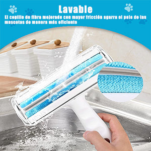 Los pelos muy pegajosos, como en sofás de terciopelo/tela, alfombras, camas, cojines, cortinas, almohadas, perreras, asientos de coche y ropa, puede recoger todos los pelos de las mascotas.