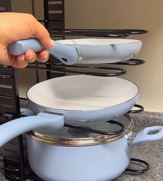 ✅ Estante ajustable para ollas y tapas.