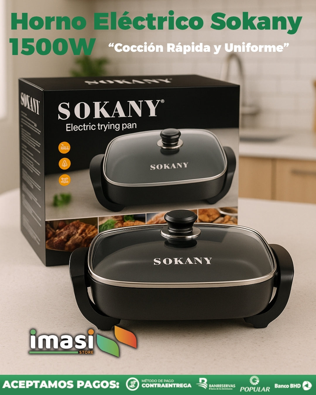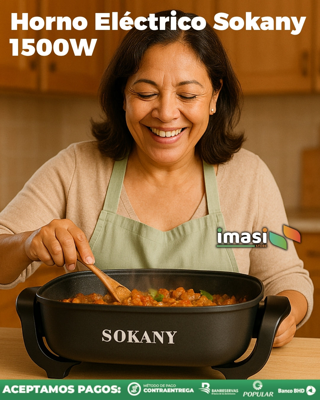El Horno Eléctrico Sokany 1500 W combina potencia, practicidad y diseño en un solo producto. Ideal para familias dominicanas que buscan cocinar sin complicaciones, sin grasa excesiva y sin llenar la cocina de humo. Ahorras tiempo, energía y espacio, mientras disfrutas comidas deliciosas con el mejor sabor casero.