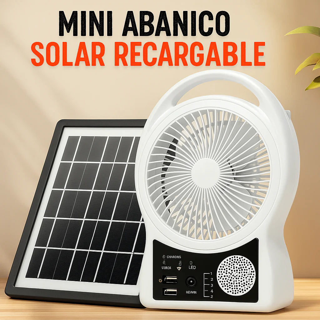 🌀☀️ Ventilador Recargable con Panel Solar + 2 Focos LED 🔋💡
