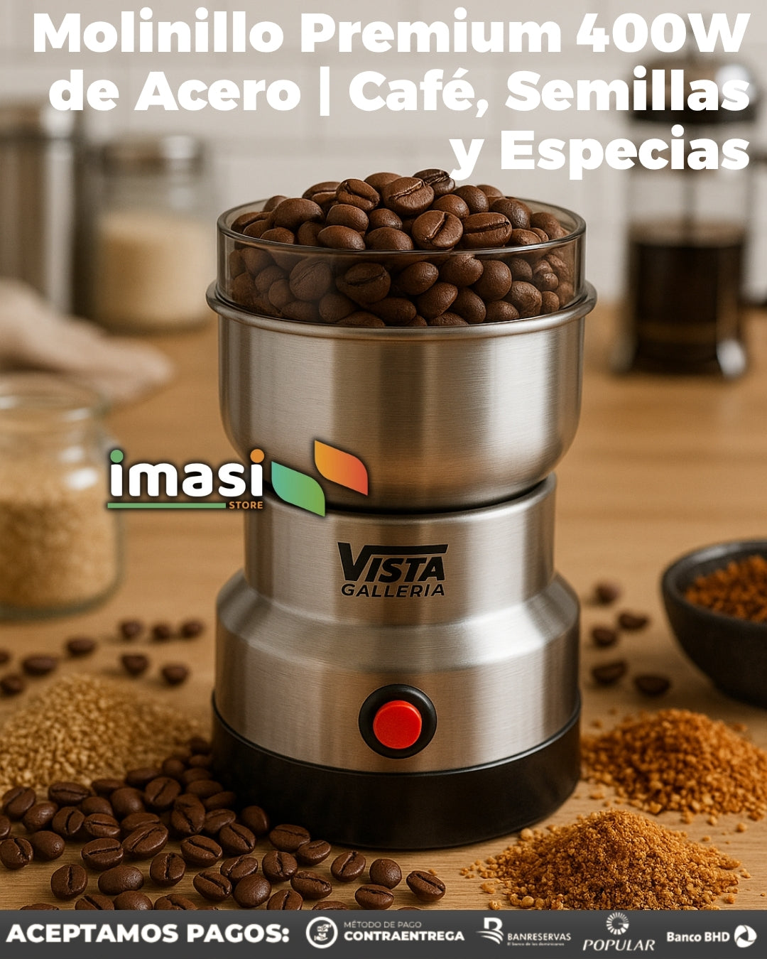 Porque moler al momento marca la diferencia: el café conserva sus aceites y las especias su aroma natural. Con 400W, acero inoxidable y molienda por pulsos, obtienes sabor, control y rapidez en un equipo compacto. Además, compras sin riesgo: envío gratis, pago al recibir y garantía.