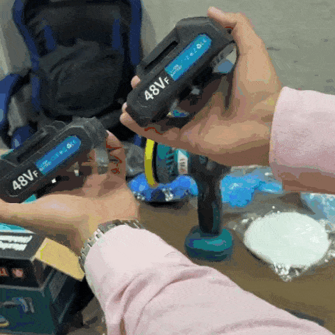 ✅ 3. Mayor Duración con Doble Batería: Incluye dos baterías de 48V, lo que te garantiza horas de trabajo sin parar, ideal para pulir vehículos completos en una sola jornada.