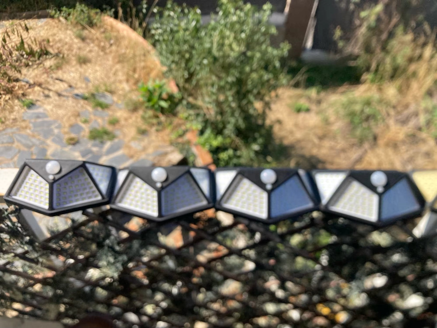 Set de 4 luces LED solares con sensor: impermeables, potentes y fáciles de instalar.