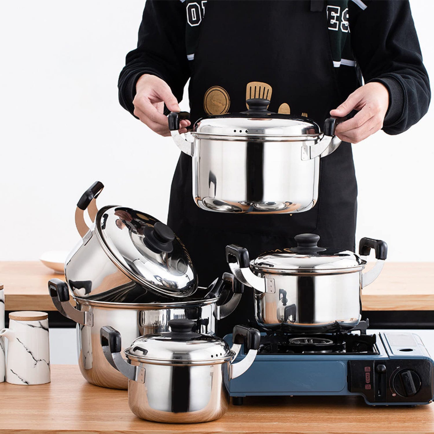 “Cocina Inteligente: Ollas Apilables de Acero Inoxidable con Estilo Profesional”