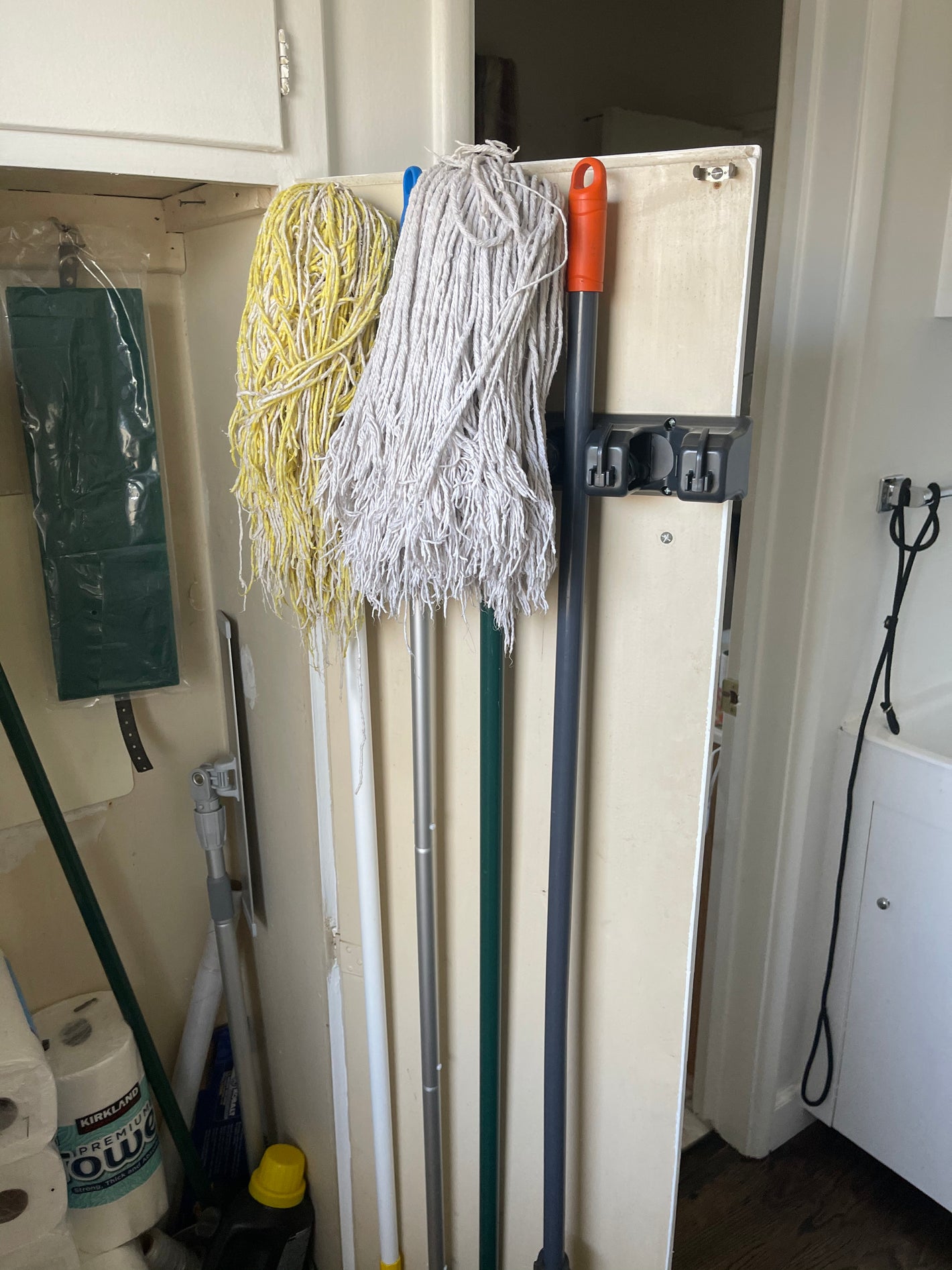 Imagina abrir el closet de limpieza y ver todo alineado: escoba y suape firmes, cepillos y guantes a la mano, nada en el piso