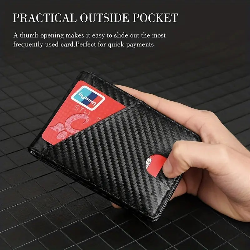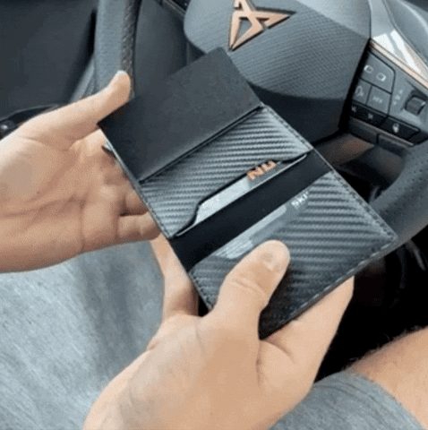 El Tarjetero Portátil de Fibra es compacto, resistente y con protección RFID. ¡Lleva tu seguridad al siguiente nivel! 🚀